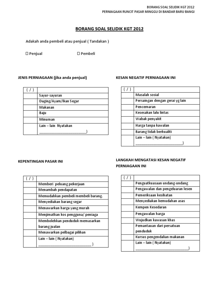 Contoh borang soal selidik kerja kursus pengajian am stpm. Kemungkinan responden menjawab soalan dengan sambil lewa memberi jawapan yang kurang tepat atau mengelirukan. LAMPIRAN guna kertas warna 2.